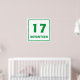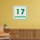 Green number seventeen on white background with green border. Help your little one learn the numbers with this number seventeen design.