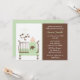 Simply sweet baby shower invitation or new baby birth or adoption announcement features a beautiful vector illustration of a happy baby in crib. Available in blue, pink or green with brown accent colours. Custom colours available by request.