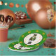 A fun green nutcracker is surrounded by a matching green border with gold fleur-de-lis. The centre background colour can be changed using the "Edit Design" button. The current text, "Merry Christmas!", can be replaced with two different names or phrases of your choosing. Coordinating party napkins can be found in the PS Pretty Papers store in the "Party Plates and Napkins > Christmas" category.
