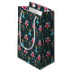 Cute and festive Christmas gift bag featuring hand drawn illustration of cat, dog, and mouse as nutcracker ballet characters. The background is green.