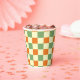Green Orange Brown Chequered Gingham Pattern Paper Cups