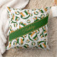 This cute volleyball team colours throw pillow for her features a pattern of varied size stylised green, orange and white volleyballs turned every which way overlying a volleyball net detail graphic - the volleyballs' green and orange panels are blended with an artsy, girly floral pattern - personalise her name in a sophisticated handwritten font on a bold, angled, full width green colour strip - background and name strip colours are customisable - by katz_d_zynes