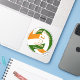 This team colours volleyball sticker for boys or girls features the realistic image of a volleyball that has green, orange and white panels - customise the player's name, jersey number, team name and mascot name - by katz_d_zynes