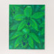 Jigsaw puzzle featuring colourful floral painting in green shades, blooming orchid flowers. Soft pastels on paper, 19 x 21 cm.