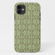 This phone case has an art deco design of three ovals broken across two very thin rectangles in camo green on a field of light green. Want the same design with different colours? Message me