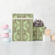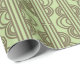 This wrapping paper has an art deco design of three ovals broken across two very thin rectangles in camo green on a field of light green. Want the same design with different colours? Message me