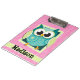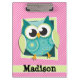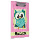 Cool, colourful kid's owl, teal green woodland owl design on pink and white stripes, striped pattern. Perfect gift for baby, toddler, kids, children, teens, or adults! Personalised the design template by adding a child's name or custom text. Visit our store, Birthday Party House, for more great customisable girly girl products!