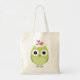 Green owl with hearts tote bag