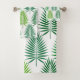 Green palm leaves, beautiful botanical pattern towel. Tropical organic green palm leaves design.
