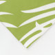 A blanket with a repeating pattern of large palm leaves on an olive green background. Trendy modern and tropical.