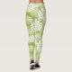Leggings with a repeating pattern of large palm leaves on an olive green background. Trendy modern and tropical.