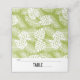 A folded table card for space for you to handwrite names and table numbers. Created with a repeating pattern of large palm leaves on an olive green background. Trendy modern and tropical.