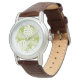 Watch with a repeating pattern of large palm leaves on an olive green background. Trendy modern and tropical.