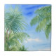 Green Palm Tree Leaves Blue Sky Watercolor Tile