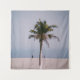 Green palm tree on seashore tapestry