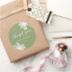 The Green Palm Tree Tropical Thank You Wedding Classic Round Sticker features a delightful design showcasing green palm trees, evoking a sense of tropical paradise. Perfect for adding a touch of exotic charm to thank you notes and wedding favours.