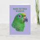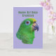 This green macaw is a member of the parrot family and he makes a colorful birthday greeting card for a grandson.