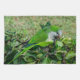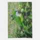 Wild green parrot on the green bush in a park in Spain. Also known as the Monk parakeet or Quaker parrot
