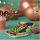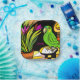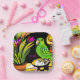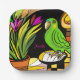 Green parrot with orange and yellow paper plate