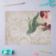 This vintage-inspired design showcases a green parrot on a branch with pink roses on a newspaper background. Great for decoupage artwork, paper crafts, or gift wrap.