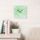 Green Pastel Spirals, Filigree & Flowers Square Wall Clock