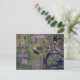 Green Patchwork Ravens mixed media postcard