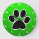 Green Paw Print Large Clock