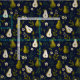 This pattern showcases beautifully hand-painted watercolor pears in lush green tones, surrounded by flowing leaves and subtle floral details. The deep navy background enhances the vibrancy of the artwork, creating a sophisticated botanical design that feels both organic and timeless.