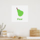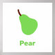 Green pear on white background with green words. Help your little one learn fruits with this pear design.