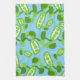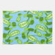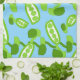 Green Peas is a vintage modern stylised pattern with peas in pods ready for picking in shades of green on blue.