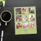 Make your own unique family photo collage as a gift or for yourself. Use four, 9 of your favourite photos of your family, friends, dream travel destination or pet! Personalise and add a name and your monogram letter. The name is written with a modern hand lettered style script with swashes. A yellow green background. To keep the swashes only delete the sample name, leave the spaces or emoji's in front and after the name.