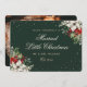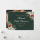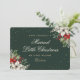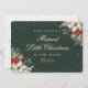 Elegant green photo holiday/Christmas wedding announcement card featuring little stars adorned with white poinsettia, red berries and winter greenery on the front and a photo at the back. Easily personalise this green photo holiday card with your family photo and the family name.