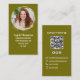 Create a lasting impression with this modern professional business card in a sleek green minimalist design, perfect for independant contractors and freelancers. Featuring your photo, QR code, and a “Connect with Me” section for social media links, it makes networking easy and stylish. The simple, clean layout highlights your business website and contact info, giving your brand a polished, approachable look.