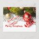 Elegant Christmas decoration. Green branch, red lanterns and silver pearls over white background. Customisable postcard template