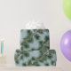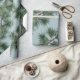 An elegant and sophisticated holiday wrapping paper featuring green white pine branch garlands on the diagonal against a lively wintery dusty blue colour background.
