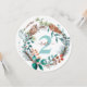 Winter wreath with green pine needles, brown pinecones, and soft green eucalyptus is beautiful on table number signs. Evergreen pine needle artwork is versatile for a variety of rust, copper, brown, and forest green wedding colour palettes. Winter wedding plant signage is easily customised for a variety of rustic winter wedding stationary.