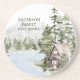 Elevate your vacation rental with our Green Pine Forest Family Lake House Cabin Coaster. Featuring woodland watercolor illustration. Personalise it and add a touch of nature charm to your lake house.