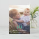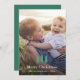 Elegant and rustic green pine trees with white Merry Christmas typography, your name, and photo.