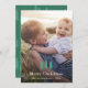 Elegant and rustic green pine tree holiday pattern with white Merry Christmas typography, your name, and photo.
