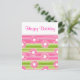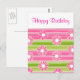 Green pink flowers stripes Happy Birthday Postcard
