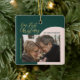 Green, Pink & Gold Modern First Christmas Photo Ceramic Ornament