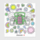 Green pink Hot Rod Car and Unicorn sticker sheet