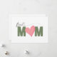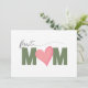 Mother's Day flat card with Best Mum script. The design on front reads “Best MOM,” where the “O” in “MOM” is replaced with a large pink heart. The word “Best” is written in a light, elegant cursive font above the “M” and the heart. The letters “M” are in a bold, olive green font. The pink heart and swirl repeated on reverse with customisable text "Thank you for all you do" "Happy Mother's Day" with space below for a personal greeting. A simple message with a modern look - perfect for a Mother's Day gift.