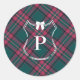 Green & Pink Tartan | Custom Monogram Holiday Classic Round Sticker