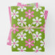 GREEN PINK WHITE DAISY FLOWERS & STRIPES WRAPPING PAPER SHEET