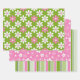 GREEN PINK WHITE DAISY FLOWERS & STRIPES