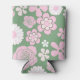 Green Pink White Retro Y2K 70s Flower Pattern Can Cooler