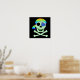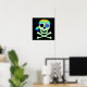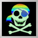 Light green skull and crossbones with dark blue eyepatch and bright rainbow bandanna. Simple colourful pirate skull design for Halloween or anytime. Background and border colours are customisable.