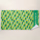 This personalised beach towel for gamers features a green and yellow pixelated pattern inspired by video game graphics. A template area at the bottom is provided for you to personalise with your name or other text. Click "Customise It" to change the size of the pattern or to make other design changes.