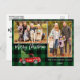 Modern Brush Script Watercolor Vintage Red Truck with Christmas Tree - Merry Christmas Family 2 Photo Green Plaid Postcard